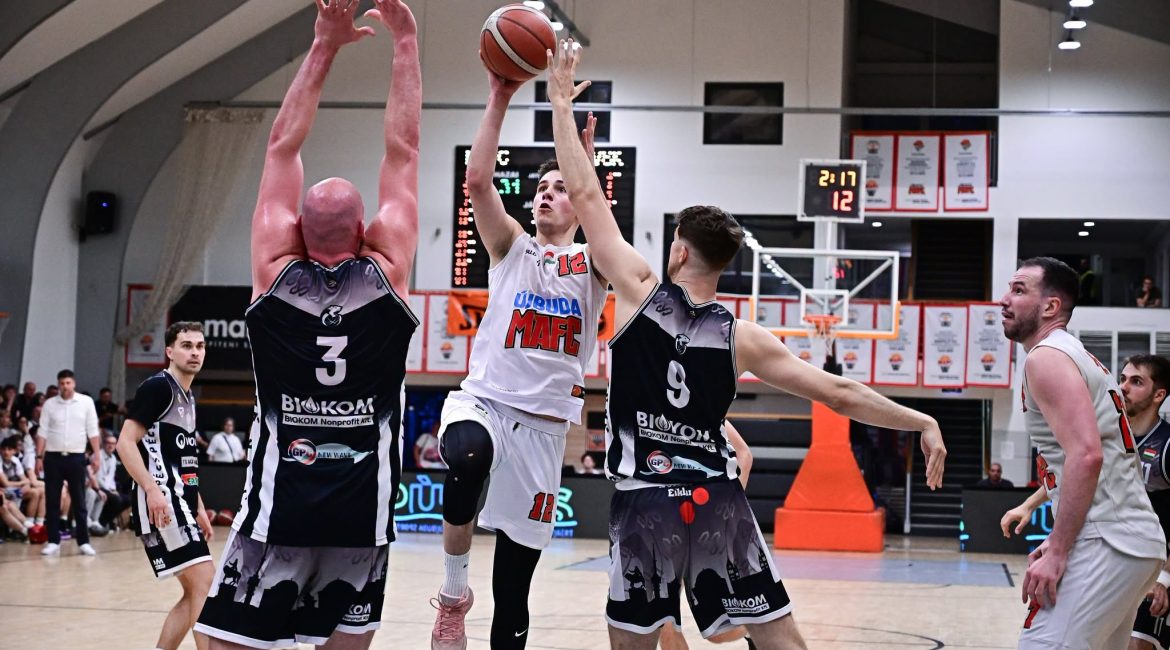 Szinte végig vezetve, mégis óriási csatában győzte le a PVSK-t az Újbuda MAFC a negyeddöntő második mérkőzésén a Gabányiban. Garai Péter együttese az első percekben három triplával akadályozta meg, hogy ellépjenek a vendégek, a folytatásban az irányítást is átvette, de leszakítani nem tudta az ellenfelet a nagyszünetig. A harmadik negyedben Pintér főszereplésével sikerült elhúzni tízzel, ezúttal is próbált hajrázni a Vasút, ám ellentmondást nem tűrő lepattanózással, kulcspillanatokban dobott bravúrkosarakkal és a MAFC-tábor támogatásával minden rohamot visszavertünk – kedden ismét megpróbáljuk elvenni a pályaelőnyt Pécsett.